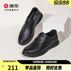 【镂空凉皮鞋】康奈男鞋2025夏季新款休闲系带百搭透气冲孔爸爸鞋