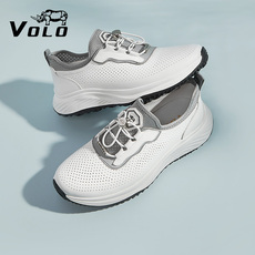 真皮小白鞋男夏季2025新款透气薄款镂空皮鞋男款厚底系带休闲板鞋