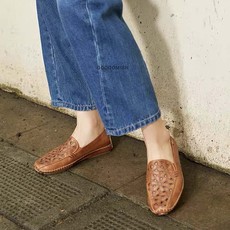 AUMU小牛皮编织乐福鞋女 中粗跟内增高镂空真皮皮鞋 休闲百搭单鞋