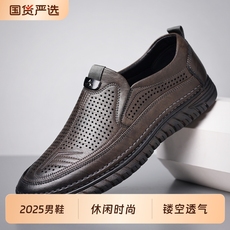 老人头男鞋2025夏季新款透气打孔鞋男士真皮镂空清凉休闲凉皮鞋潮