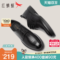 红蜻蜓男鞋夏季新款镂空休闲皮鞋男士透气真皮休闲皮鞋爸爸一脚蹬