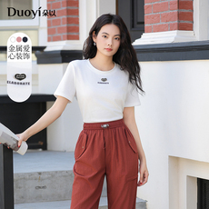 朵以2025夏季新款设计感爱心镂空金属显瘦正肩圆领短款短袖T恤女