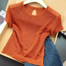 外贸莫代尔圆领镂空T恤衫夏季新款短袖修身弹力打底衫女上衣19464