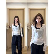 夏季防晒罩衫镂空上衣女2025新款修身T恤外搭薄款慵懒吊带两件套
