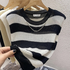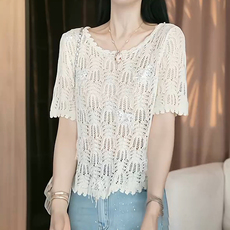 欧货小众别致设计感镂空针织衫亮片夏季时尚洋气百搭短袖t恤衫女