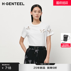 【轻生活】H·GENTEEL荷高25新款夏装女蝴蝶镂空绣花网眼纯棉T恤
