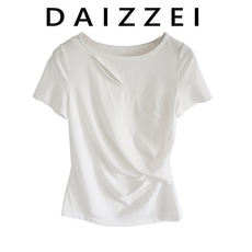 韩系后背镂空正肩白色短袖t恤女2025夏季薄款独特设计感漂亮上衣