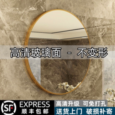 椭圆形铝合金框浴室镜卫生间无边框免打孔壁挂高清镜子化妆梳妆镜