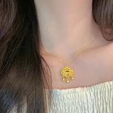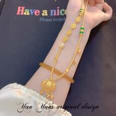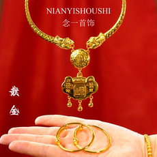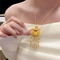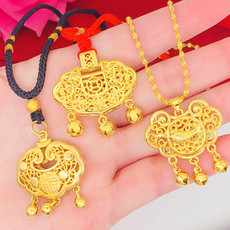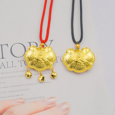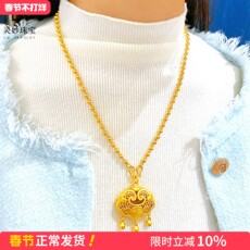 越南沙金长命锁吊坠女士镀金民族风平安锁项链项坠宝宝小孩包金锁