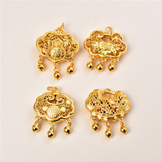 新款福袋锁包吊坠镀黄金色长命平安锁男女宝宝小孩周岁生日礼物