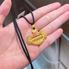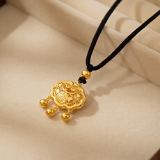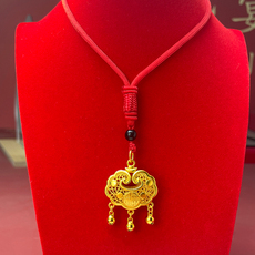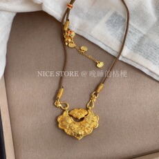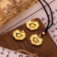 国潮新中式金元宝如意吊坠周家民族风沙金长命富贵如意锁古法挂坠