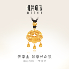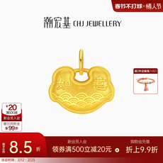 潮宏基好事发生黄金吊坠足金串珠长命锁祥云挂坠女生日礼物计价