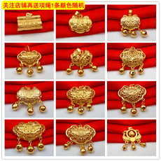 长命富贵平安锁吊坠福字项链长命锁宝宝锁仿黄金沙金周岁拍照摆台