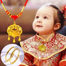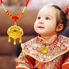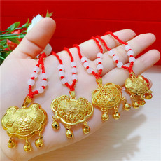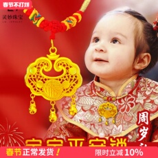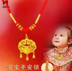 宝宝儿童百天生日周岁平安长命锁吊坠项圈戴金拍照道具编绳周岁礼