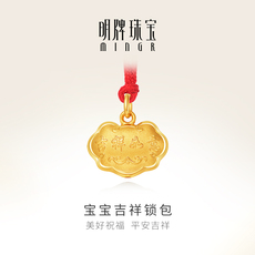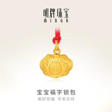 明牌珠宝古法黄金福字锁包 如意长命锁足金吉祥吊坠AFC0770