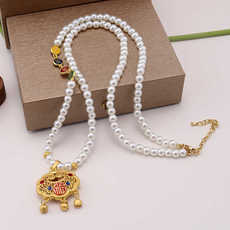晚睡的桔梗「渔也」新中式沙金双鱼锦鲤长命锁葫芦项链长款毛衣链