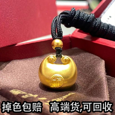 小胖福平安锁吊坠纯沙金9999仿真黄金宝宝长命锁转运珠项链不掉色
