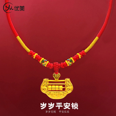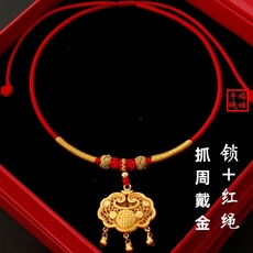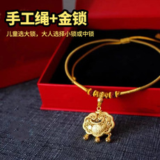 古法沙金宝宝锁吊坠红绳福字长命平安锁项链儿童满月周岁礼送礼