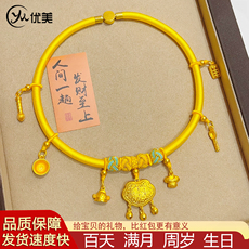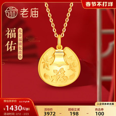 老庙黄金足金999福佑锁包带响铃挂坠宝宝满月周岁长命锁礼物正品