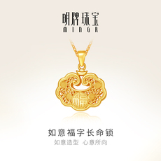 明牌珠宝黄金吊坠 足金宝宝福字镂空如意长命锁吊坠满月礼AFD0064