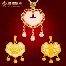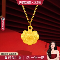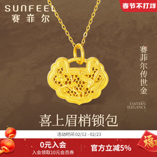赛菲尔传世金吊坠女足金喜上眉梢挂坠古法金锁包平安锁长命锁坠子