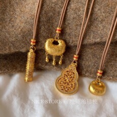 晚睡的桔梗「金不语」新中式沙金葫芦长命锁金刚杵项链毛衣链