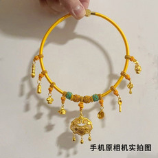 古法沙金福字铃铛锁宝宝项圈手工编织婴儿满月项链抓周长命锁挂坠