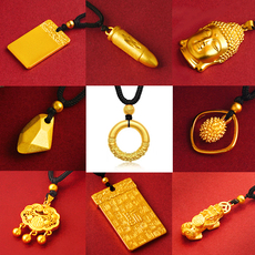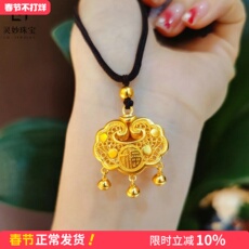 沙金平安锁吊坠女款金店同款福字如意锁仿真黄金宝宝长命锁高端货