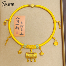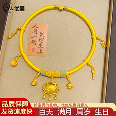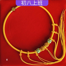 宝宝周岁百天生日长命百福金锁圈黄项圈编绳平安锁手工编项链礼物