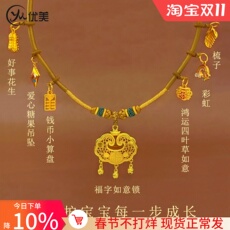 宝宝周岁仿金平安锁百福长命富贵锁成品项圈生日满月送礼金饰道具