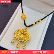 永保平安长命锁黑绳项链儿童宝宝铃铛沙金仿黄金百天照毛孩子项坠