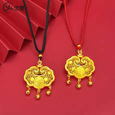水贝黄金店同款金包银古法福字平安锁吊坠女如意长命锁项链送女友