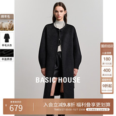 HAI STUDIO秋冬 女士黑色立领长款外套廓形羊毛呢大衣