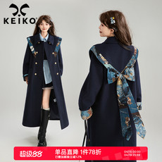KEIKO 高级感立领羊毛呢大衣冬季韩系格纹撞色中长款呢子风衣外套