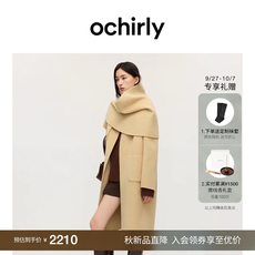 OCHIRLY欧时力 羊毛双面呢配围巾大衣女慵懒长款外套2025秋冬新*