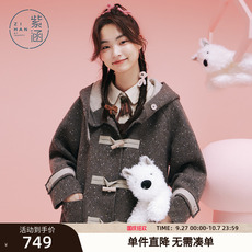 紫涵中长款羊毛呢连帽大衣女冬季新款学院风设计感直筒双面呢外套