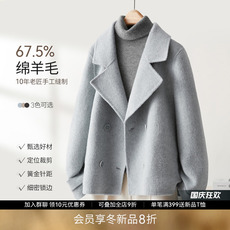 酒午自制法式复古秋冬季100%羊毛双面呢大衣宽松中长款呢子外套女