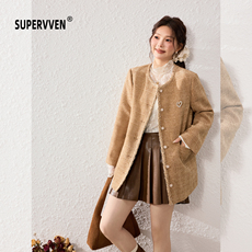 超级文 料峭春风中长款粗花呢气质小香风羊毛外套大衣女微胖大码