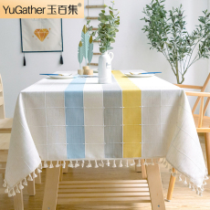 桌布ins风棉麻布艺田园格子台布长方形简约餐桌垫网红小清新亚麻