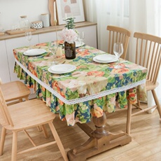 油画花朵欧式纯棉长方形餐桌布桌套田园茶几台布布艺盖巾荷叶花边