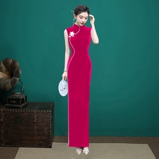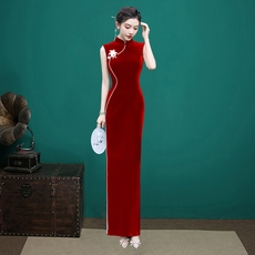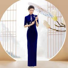 2025秋冬新款改良版中式复古气质民国风长款丝绒走秀演出服旗袍裙