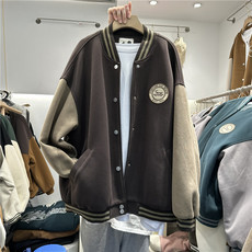 大9 美式复古撞色棒球服拼接宽松慵懒夹棉休闲外套秋冬装新款