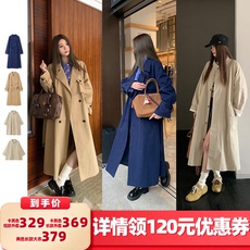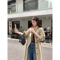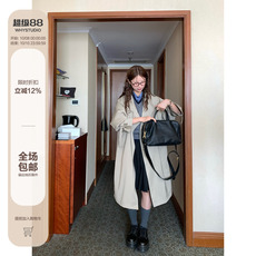 阿车家的大码JK 卡其色中长款风衣女春季新款韩版双排扣短款外套