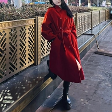 退货包运费的春秋显瘦气质小香风玫红色粉色中长款系带风衣女外套