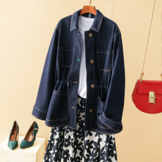 高级感翻领休闲牛仔外套女秋季韩系穿搭巨好看的宽松中长款风衣潮