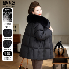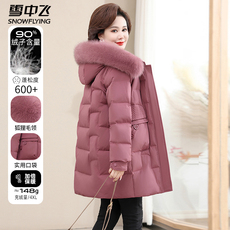 雪中飞冬季中年女士妈妈装羽绒服女款大毛领冬装中老年中长款外套