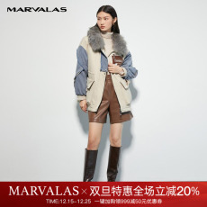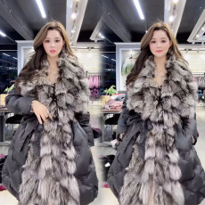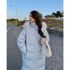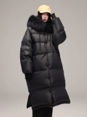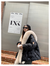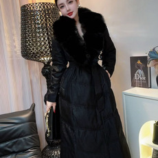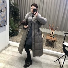 欧货冬季新款银狐狸大毛领白鸭绒羽绒服女中长款名媛气质风衣外套