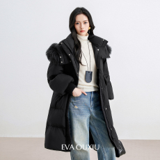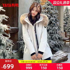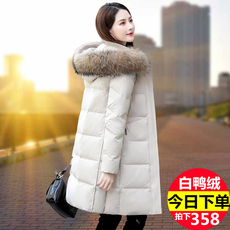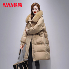 鸭鸭长款羽绒服女款连帽大毛领过膝加厚时尚休闲宽松保暖鸭绒外套