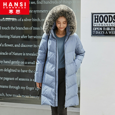寒思新款女大毛领时尚显瘦中长款加厚冬天保暖连帽羽绒服外套2388