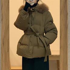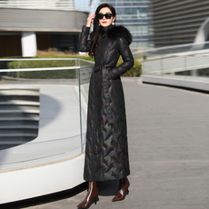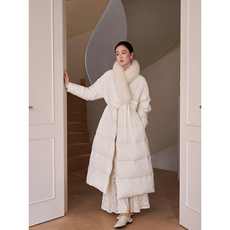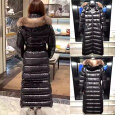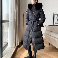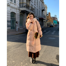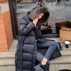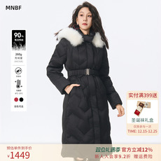 蒙口琪家超厚羽绒服女长款到脚踝90白鸭绒大毛领收腰显瘦连帽外套